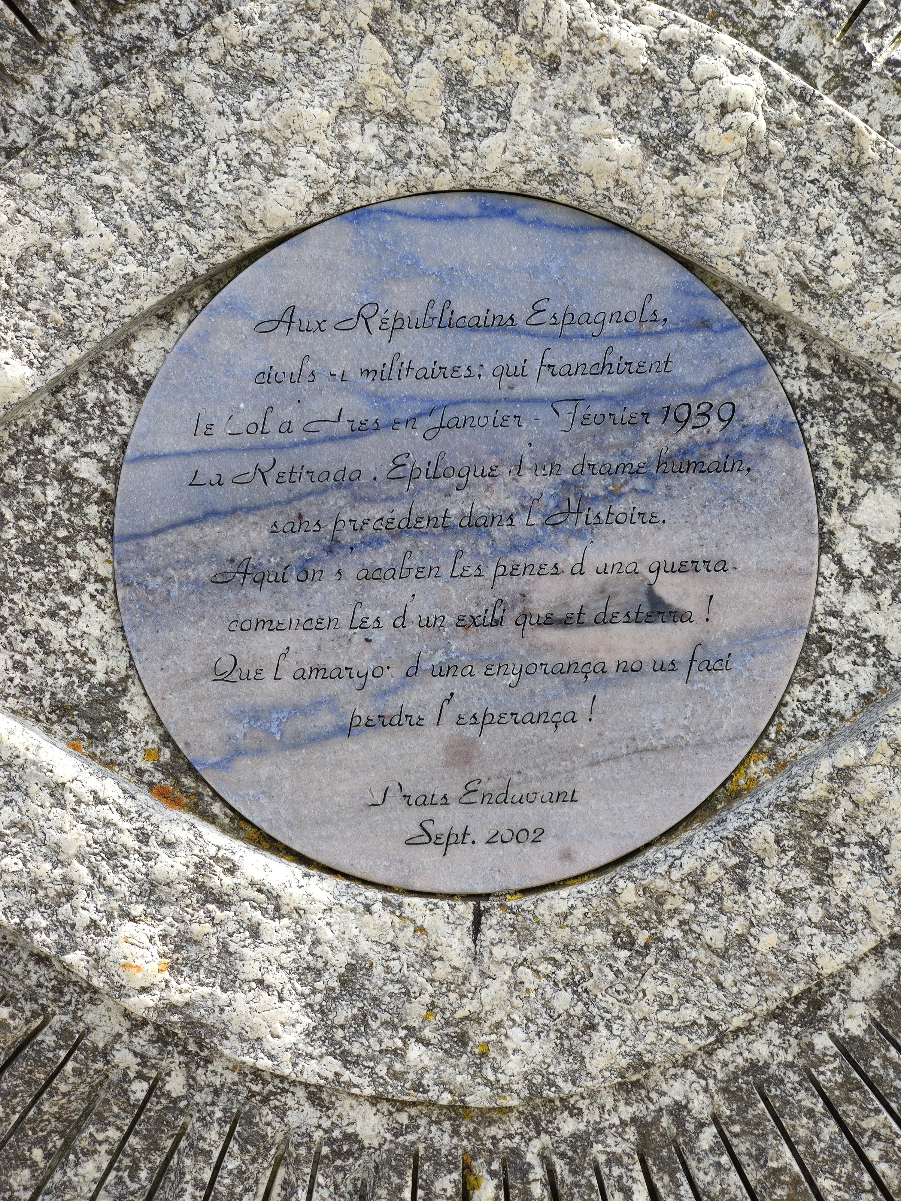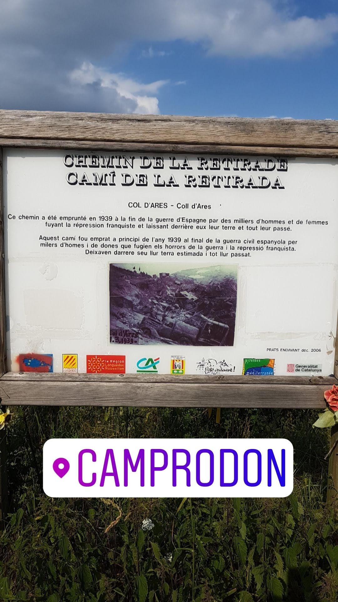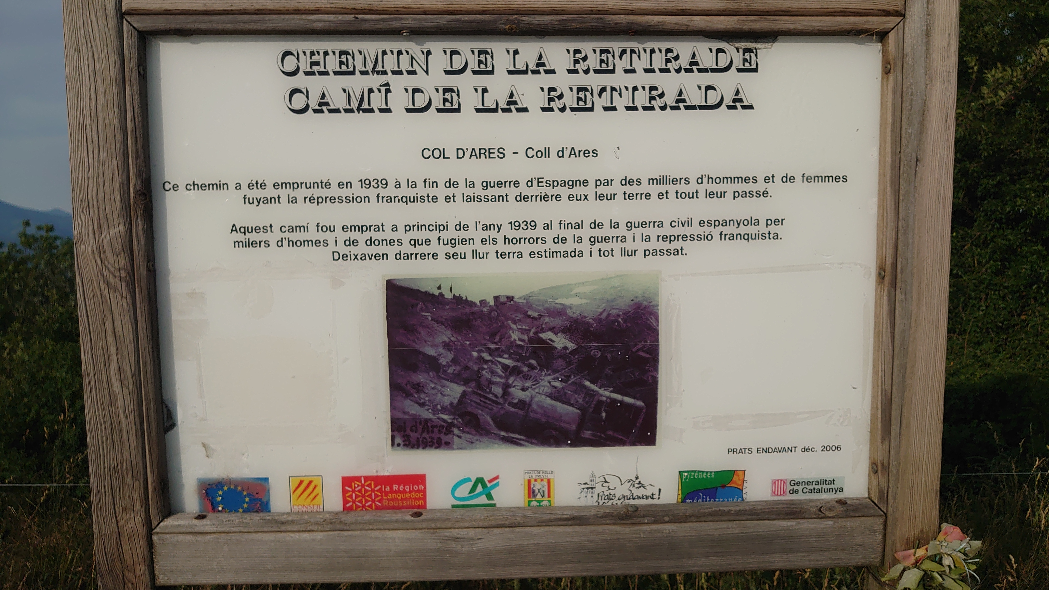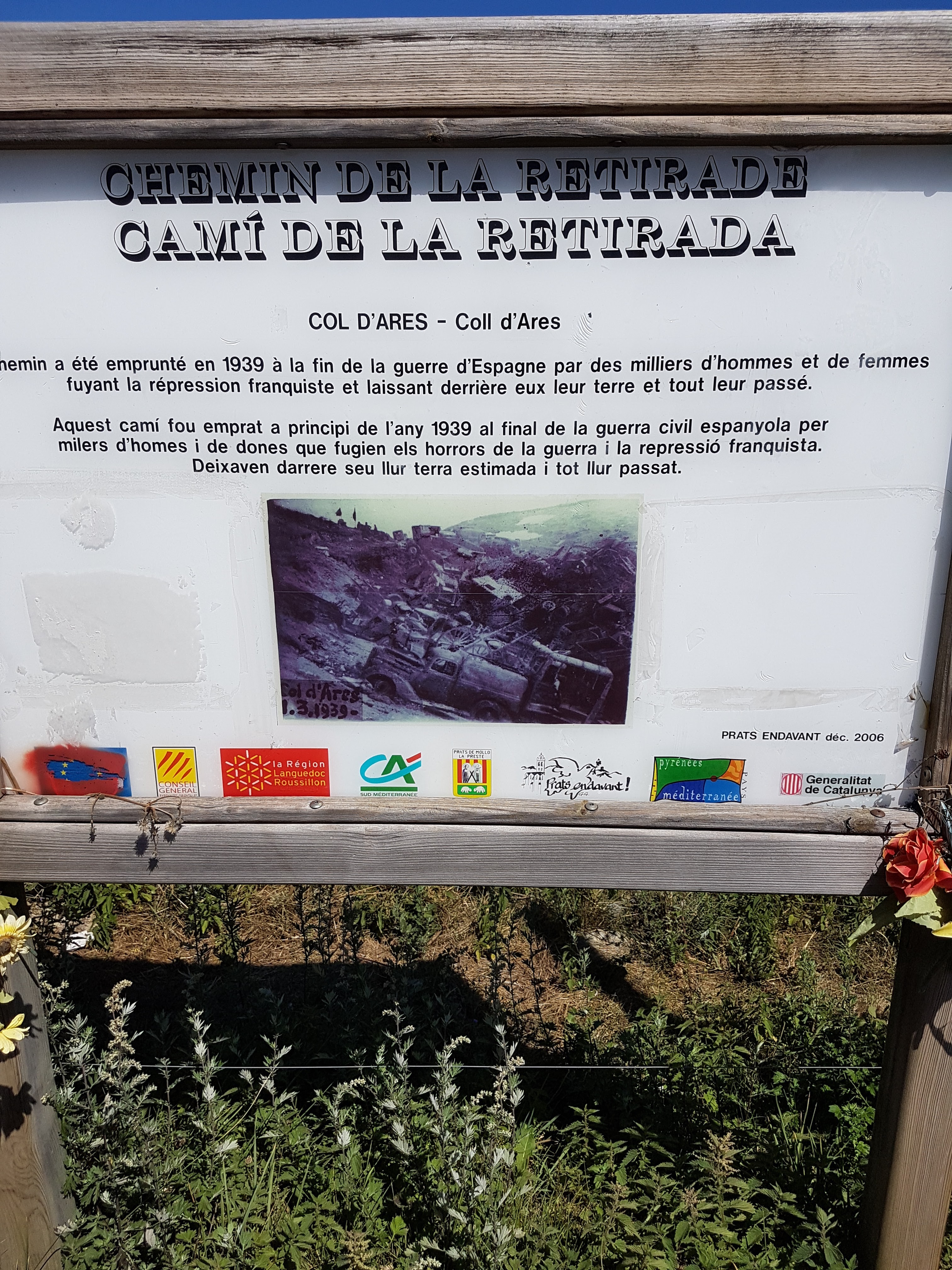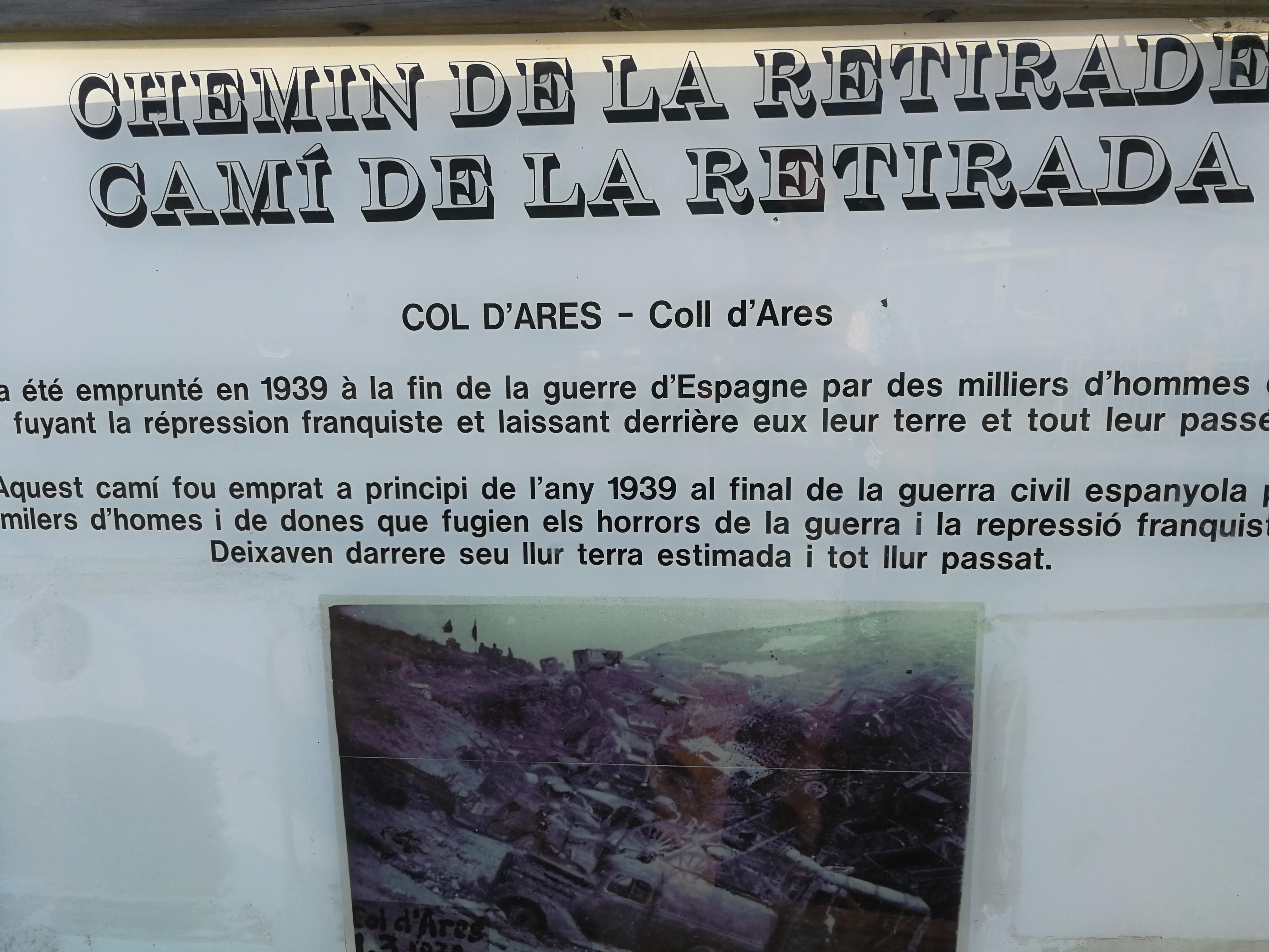 Il y a un monument à la Flamme du Canigó et un panneau indiquant le chemin de l'exil (chemin de retraite). Le paysage est impressionnant et la charge symbolique, brutale.