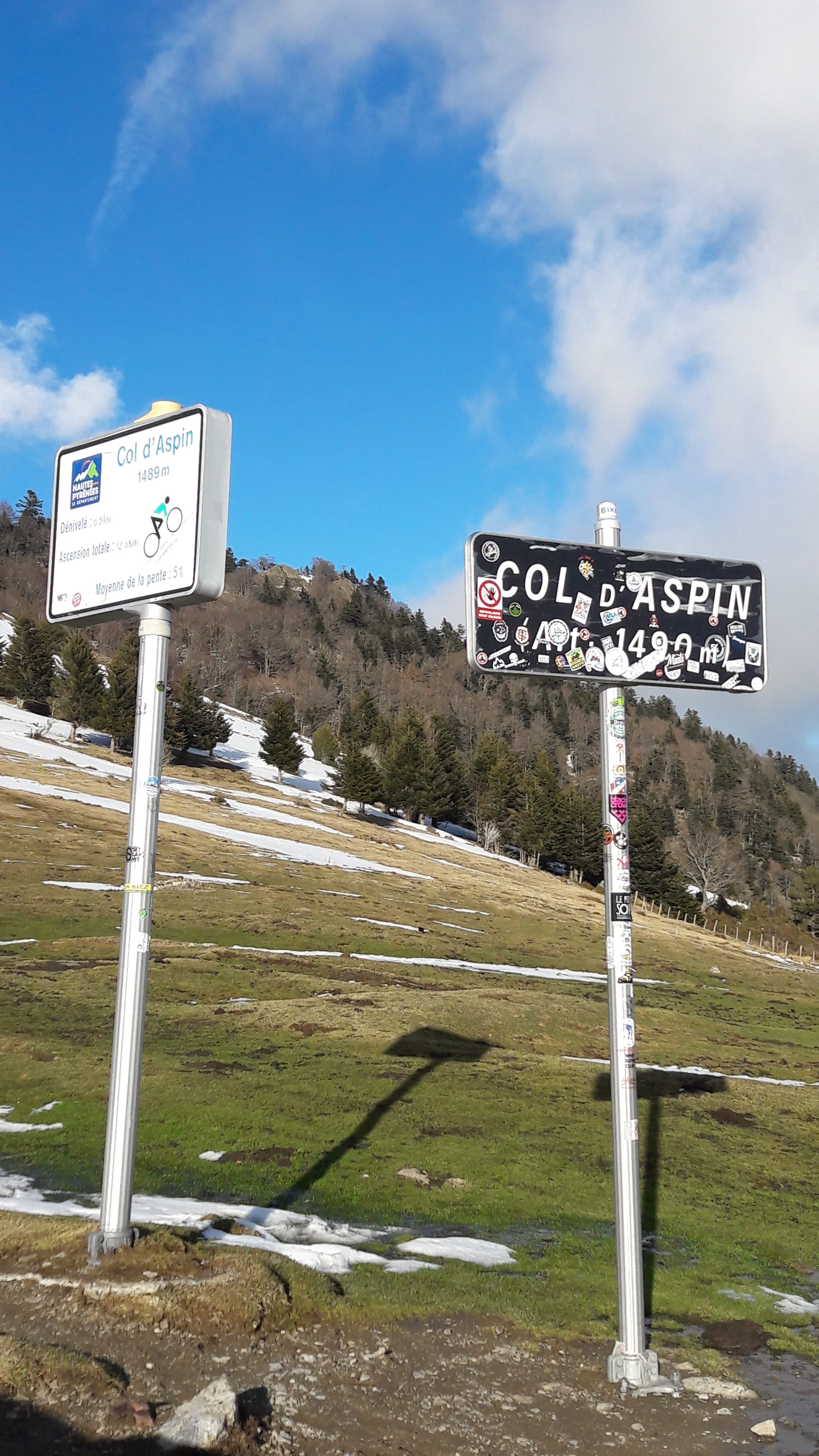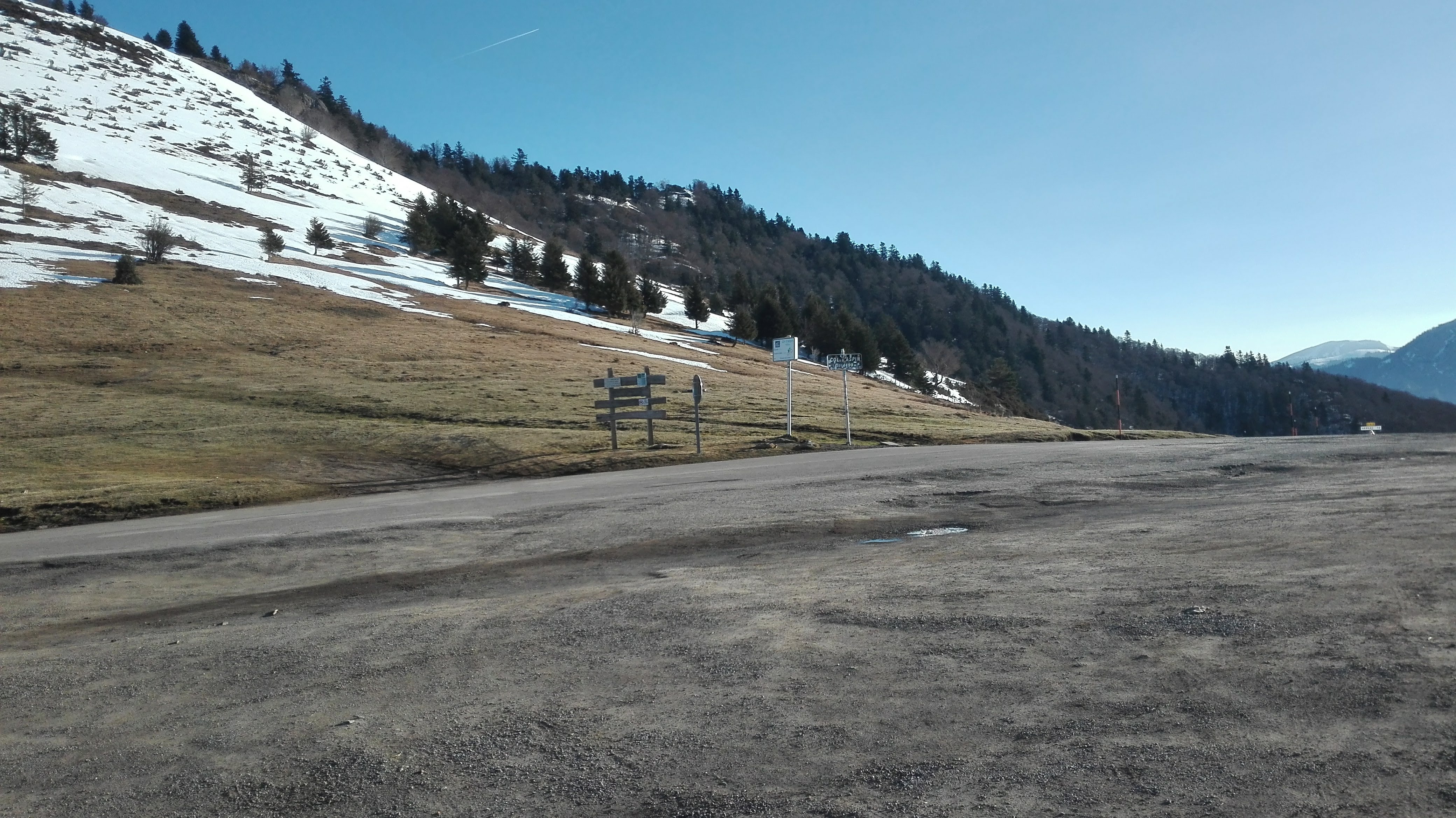 Ascension à vélo depuis Arreau en 50mns, descente et remonté depuis Payolle en 22mns. Une sortie test en montagne au mois de janvier qui permet de situer son niveau de début d'année...État des routes radicalement différents d'un versant à l'autre...