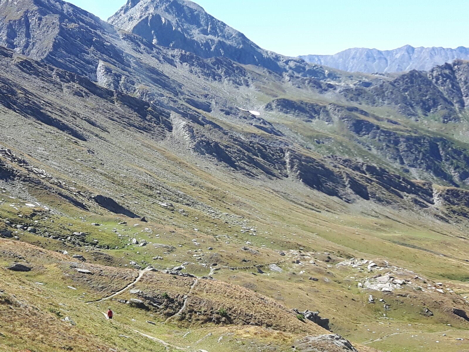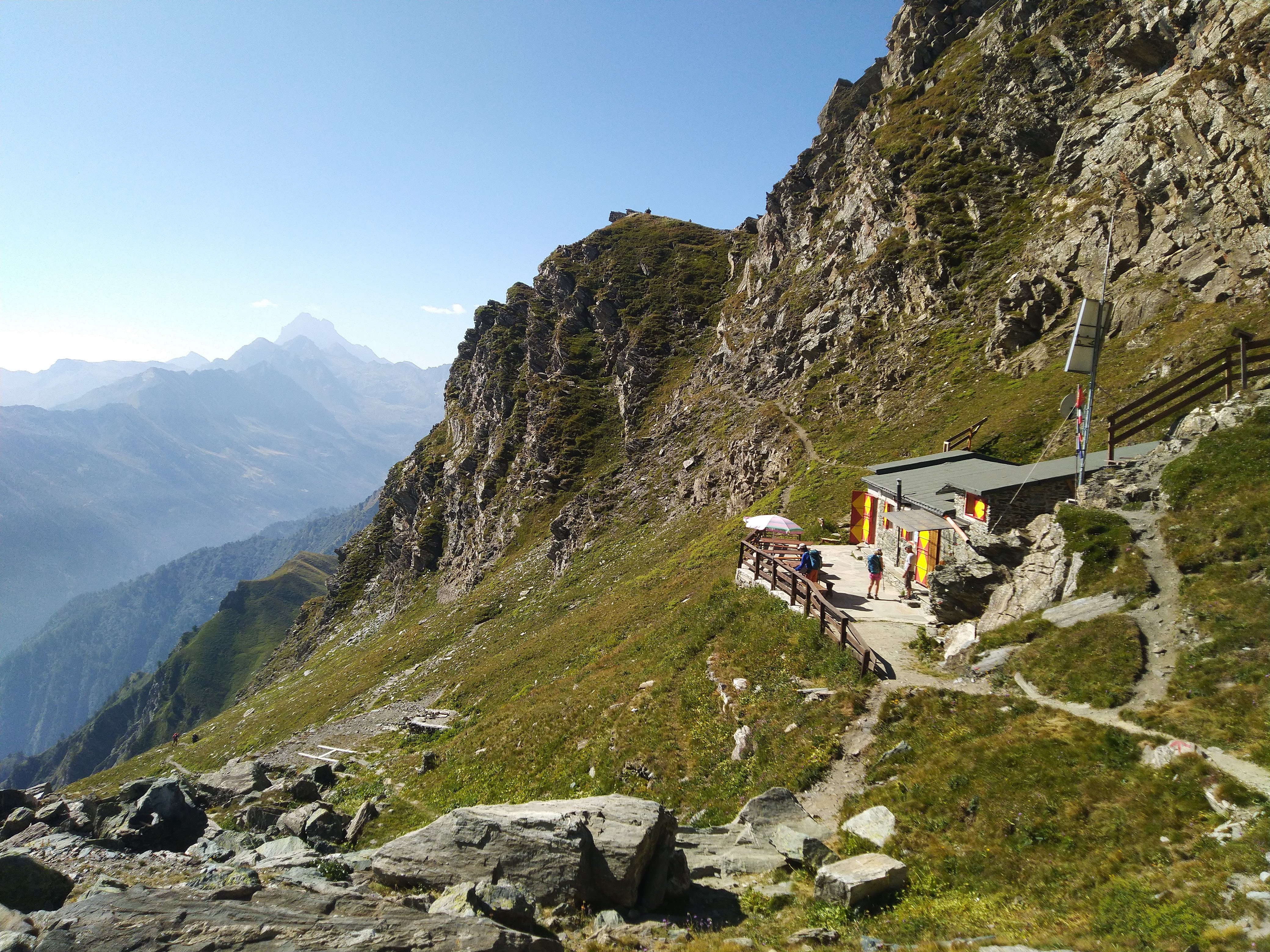 2ème col du jour ...... et une vue toujours aussi jolie !!. Le petit refuge italien Nino Sardi en contrebas est surprenant par ses couleurs et son accroche à la montagne !! La classe !!:)