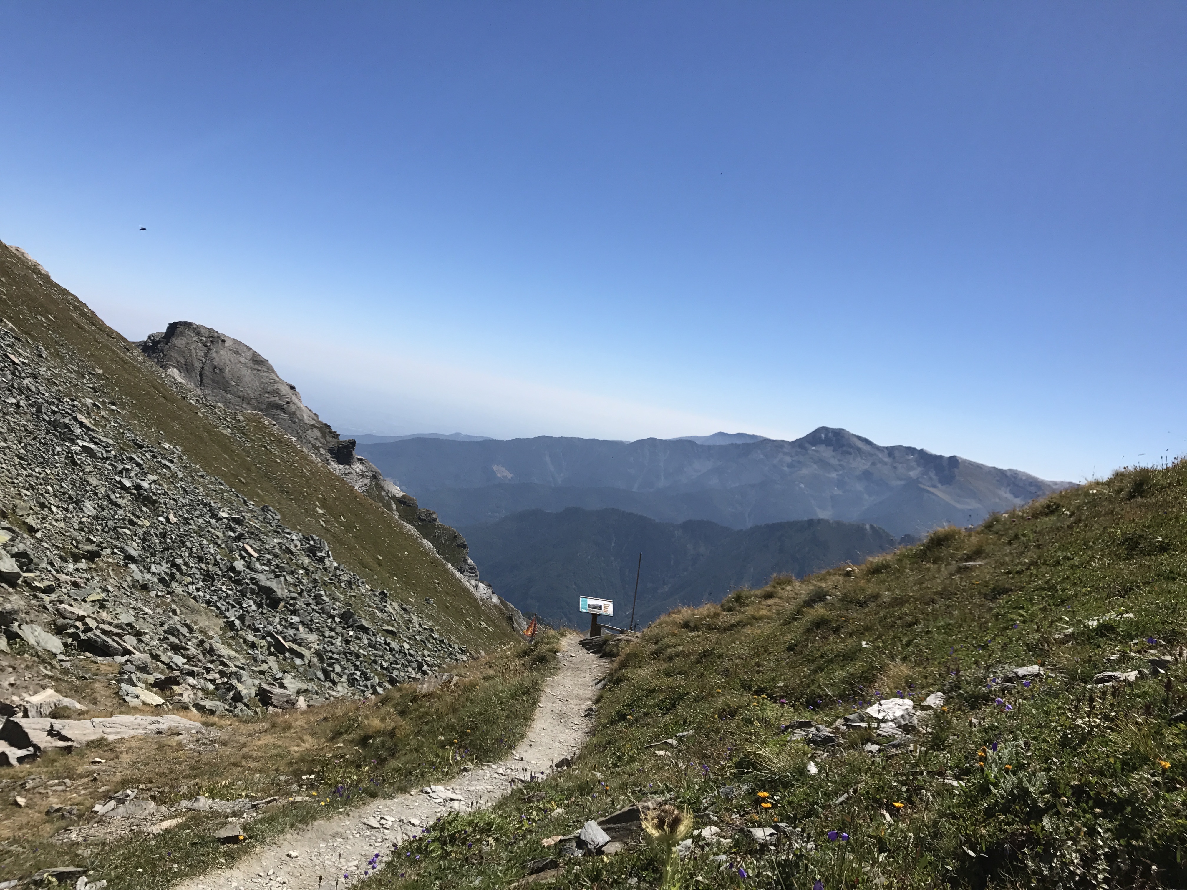 Belle randonnée à faire depuis le hameau de Valpréveyre. Le col du Bouchet à 2630m d'altitude permet de passer de la France à l'Italie. Le refuge du CAI est 100m en dessous du col coté italien. Le panorama sur la France est somptueux, celui sur la vallée italienne plus rarement visible à cause de la Nébia, cette brume fraîche remontant les pentes Est. Une ballade sympathique (4h aller) à faire en famille.