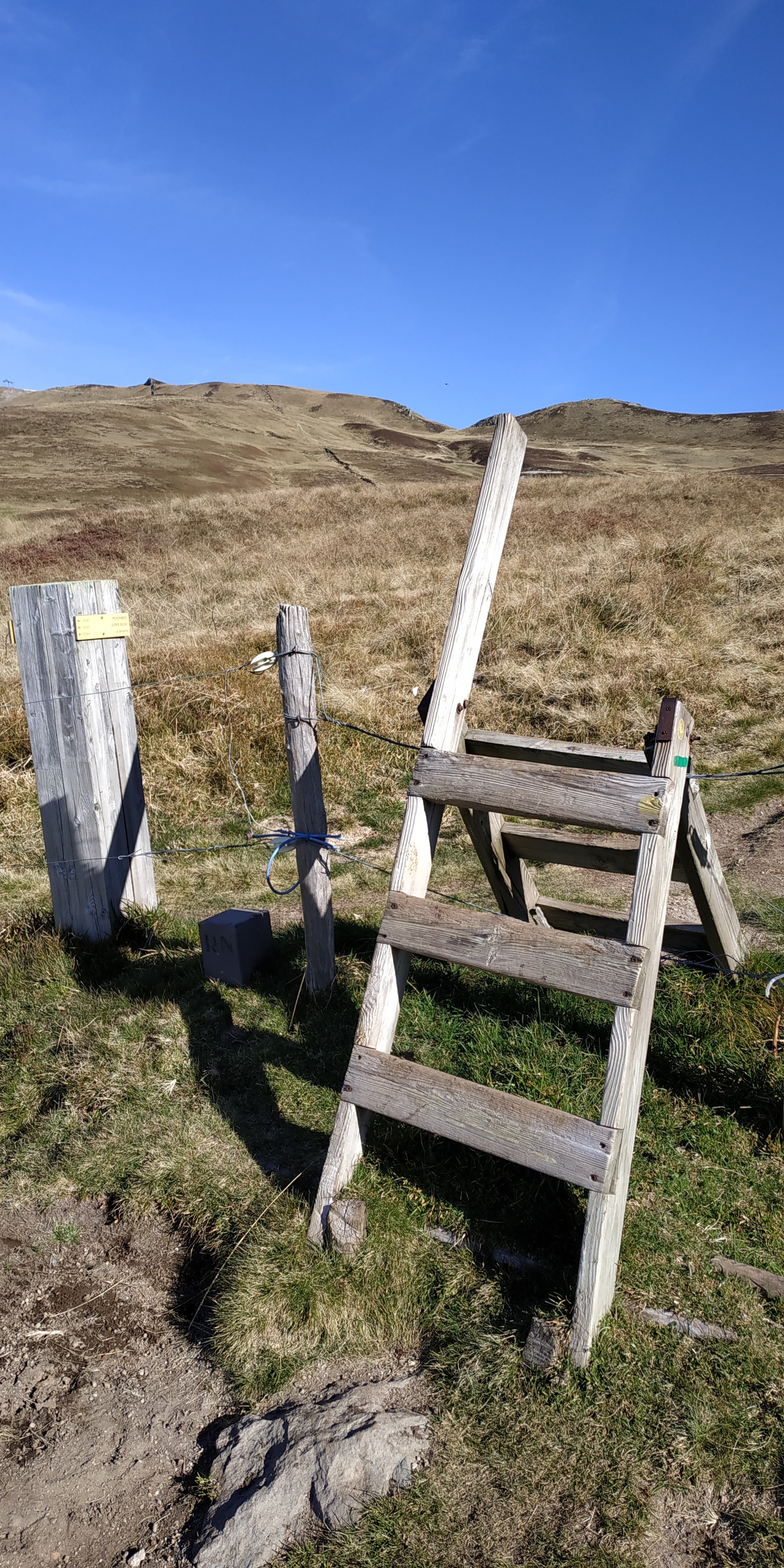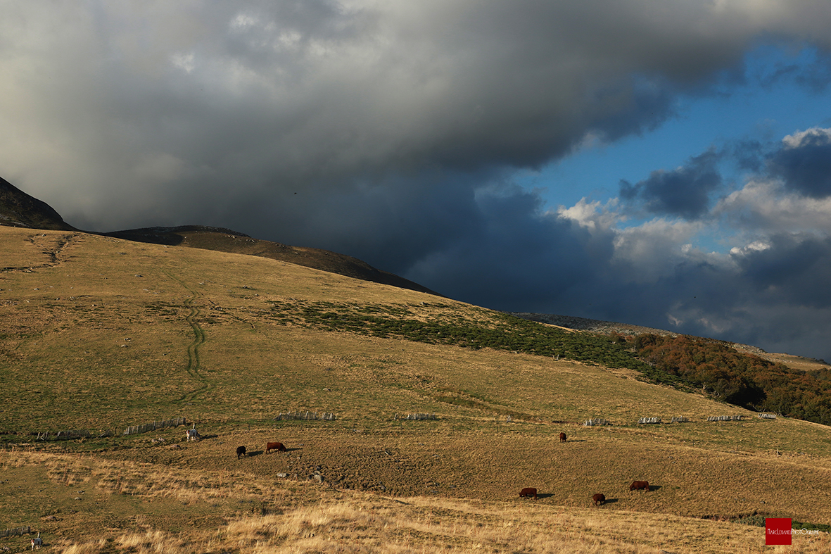 Le Col de la Geneste (Δ 1372m), entre Besse et Picherande, dans le Puy de Dôme en Auvergne-Rhône-Alpes. Au pied du Puy Paillaret (Δ 1721m), un volcan du Massif du Sancy, il y a le chemin des crêtes mène au Puy du Sancy (Δ 1886m), des coulées de laves, chaos de pierres sont visibles. Au loin, perchée en haut d’un monticule, une maison seule, totalement isolée qui renforce l’aspect désertique et mystérieux des lieux. C’est ici, dans ce coin sauvage, que paissent des troupeaux de Salers durant les «estives». Une légende locale raconte qu’Il y a quelques millions d’années, le Bon Dieu, assis sur son nuage en compagnie de Saint Pierre, contemplait les volcans. D’épaisses langues de laves s’épanchaient autour de l’énorme cratère qui crachait feu et flammes, projetant parfois de magnifiques chapelets de boules rougeoyantes qui dévalaient les flancs de l’abrupt édifice. Le Bon Dieu trouva cela du plus bel effet. Saint Pierre lui dit : - Quel dommage Seigneur ! Quand ce beau volcan sera éteint, que restera t-il de tes magnifiques couleurs ? - Tu as raison Pierre, lui répondit le Très Haut. Puis, après réflexion, il déclara : De ces boules rouges, je vais faire des vaches et elles pourront ainsi parcourir à loisir ces montagnes que je couvrirai d’herbe grasse.