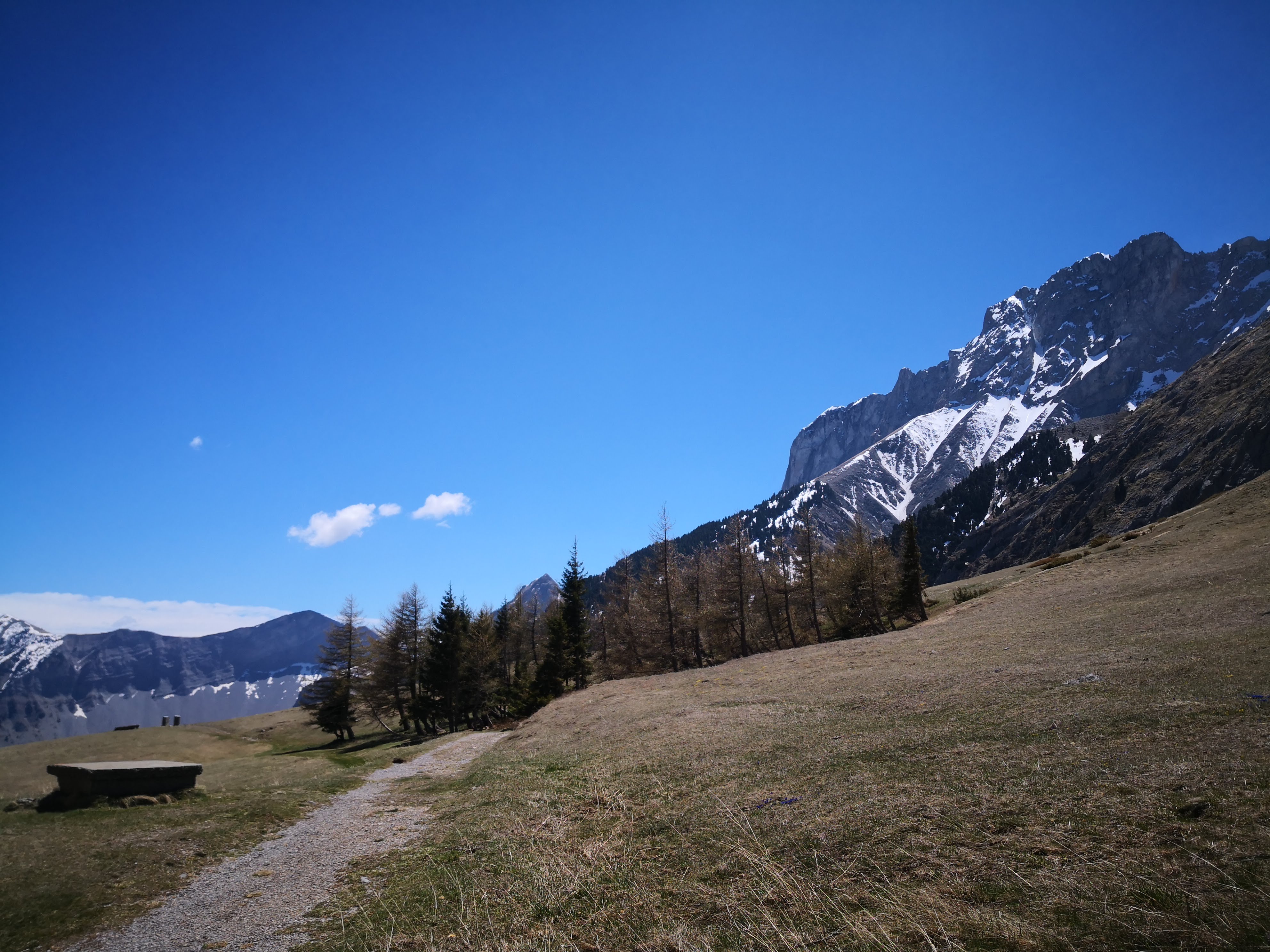 Vues superbes sur d'un côté le Dévoluy, de l'autre les Écrins...